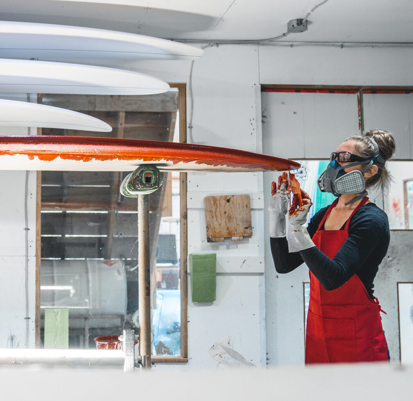 This nomadic lifestyle eventually flowed into a passionate and hands-on career in the surfboard industry, where Kelly found a home as a surfboard glasser — turning raw materials into finely tuned wave-riding machines. Each board tells a story of skill, patience, and connection to the ocean.
